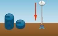 次に、ロッドの上部にウエイト(おもり)を順番に載せ、荷重を段階的に加えます。荷重は0.05kN、0.15kN、0.25kN、0.5kN、0.75kN、1.0kNと増やしていき、スクリューポイントが自然に地中へ貫入するかを観察します。途中で沈み始めた場合は、その時の荷重値と貫入深さを記録します。これにより、地盤の軟弱さや抵抗の度合いが判断できます。